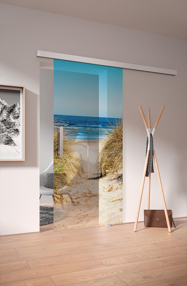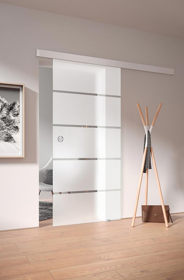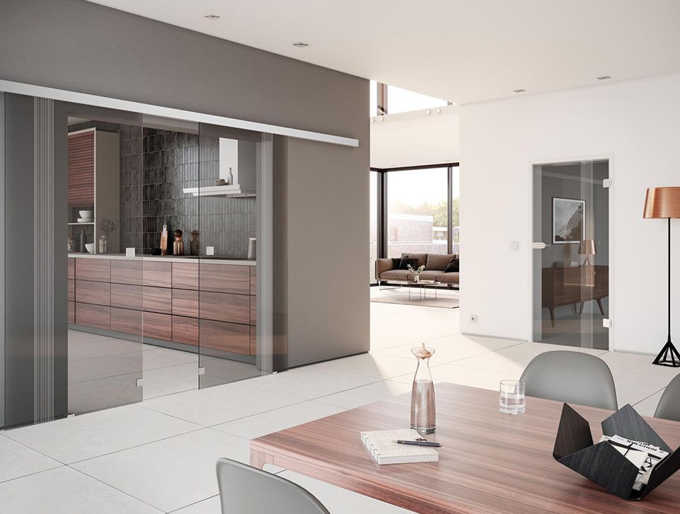 Bei uns haben Sie die Möglichkeit, eine Glastüre als sog. Anschlagtüre oder als hängende Türe (auch Schiebetüre) zu erhalten.